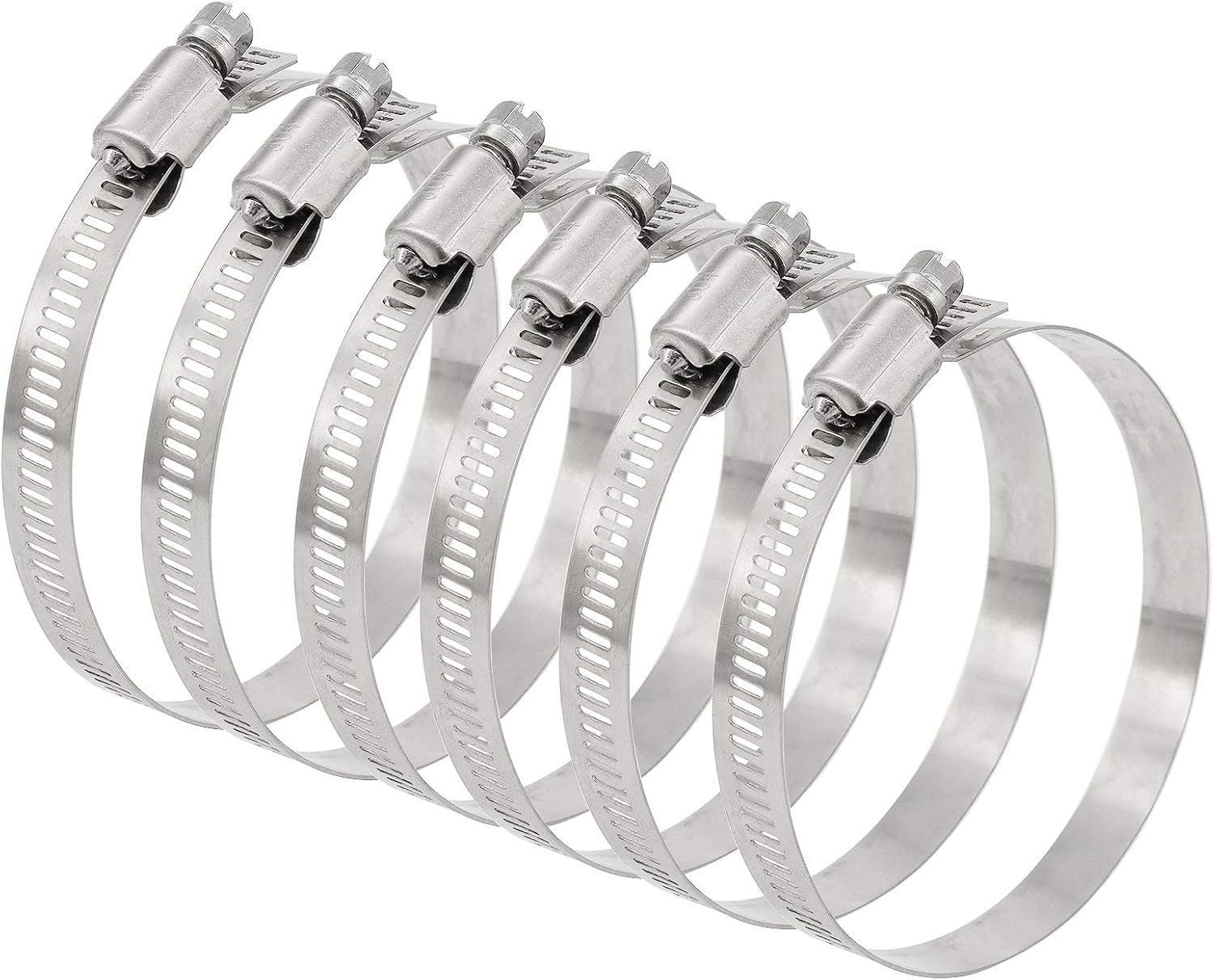 Duct Clamp, 2.5 Inch 304 Stainless Steel Hose Clamp Adjustable 46-70mm Pipe Clamp Worm Drive Clamp Air Ducting Clamp for Automotive Mechanical Agriculture, 6 Pack