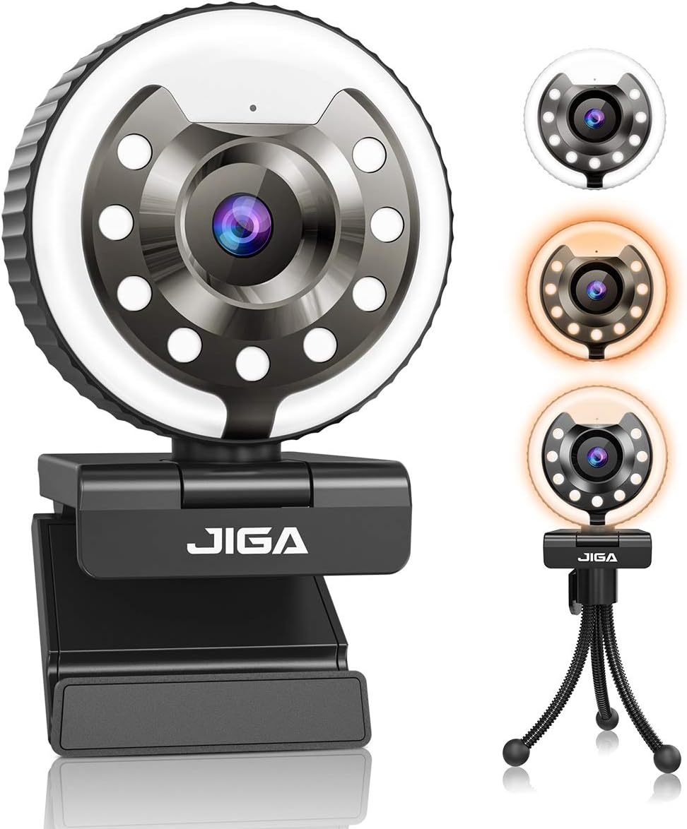 Webcam for PC Laptop Built-in Adjustable Ring Light JIGA HD Streaming Web Camera with Microphone for Xbox Gamer Facebook YouTube Studying Conference [Warm, White, Natural Light]